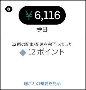 正直に言うと、日曜日にしては注文の鳴り(リクエストの頻度)が少し弱い、「閑散期かな?」と感じる一日でした。それでも、時給換算すれば1,656円。これは決して悪い数字ではありません。