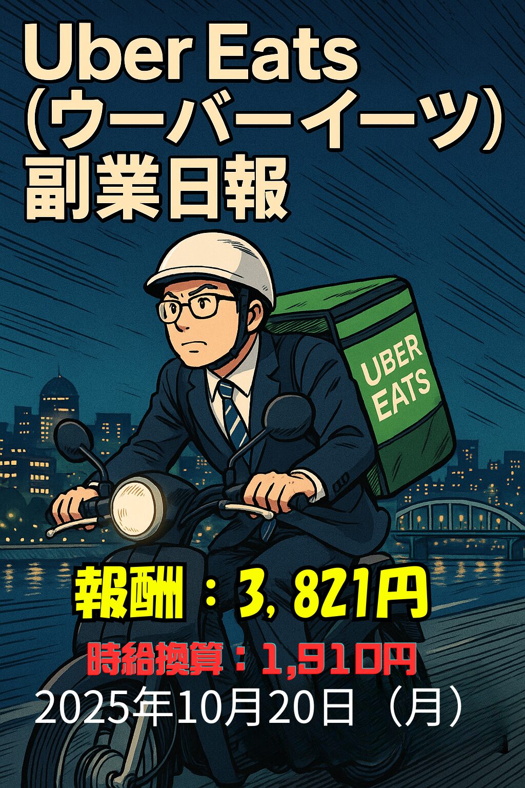 2025年10月20日(月)。本業を終えた僕は、18時ちょうどに広島市内の道を走り始めました。目標は「2時間で3,500円」。果たして、疲れた体でこの目標は達成できるのでしょうか?