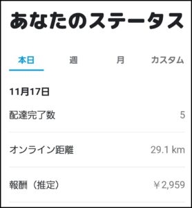【配達日報】週末の不調からV字回復した月曜日